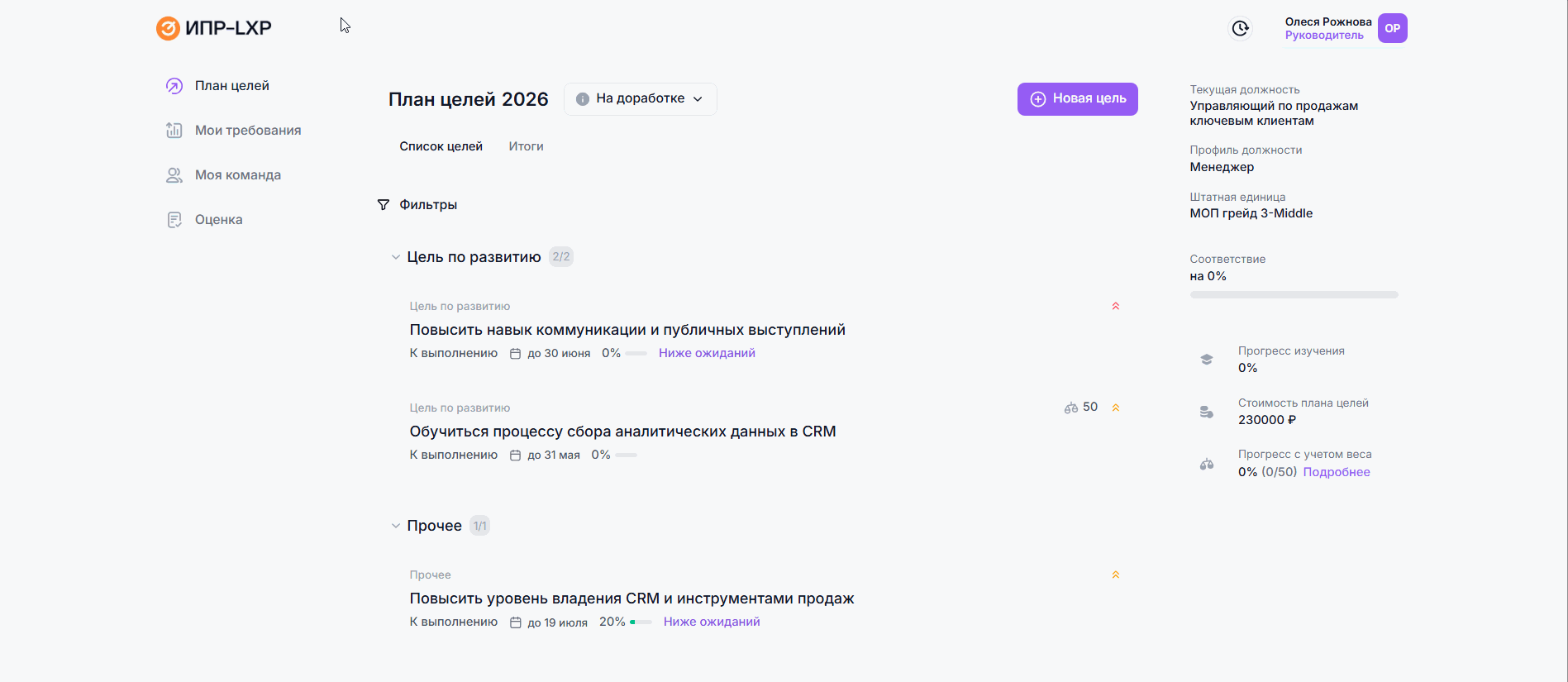 Подведение итогов по цели в ИПР сотрудника