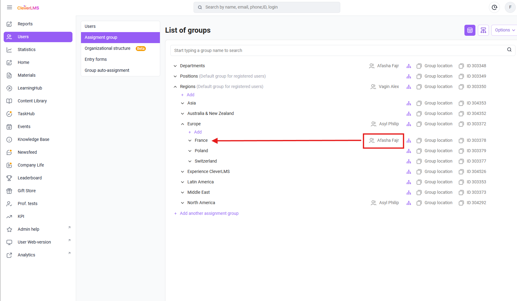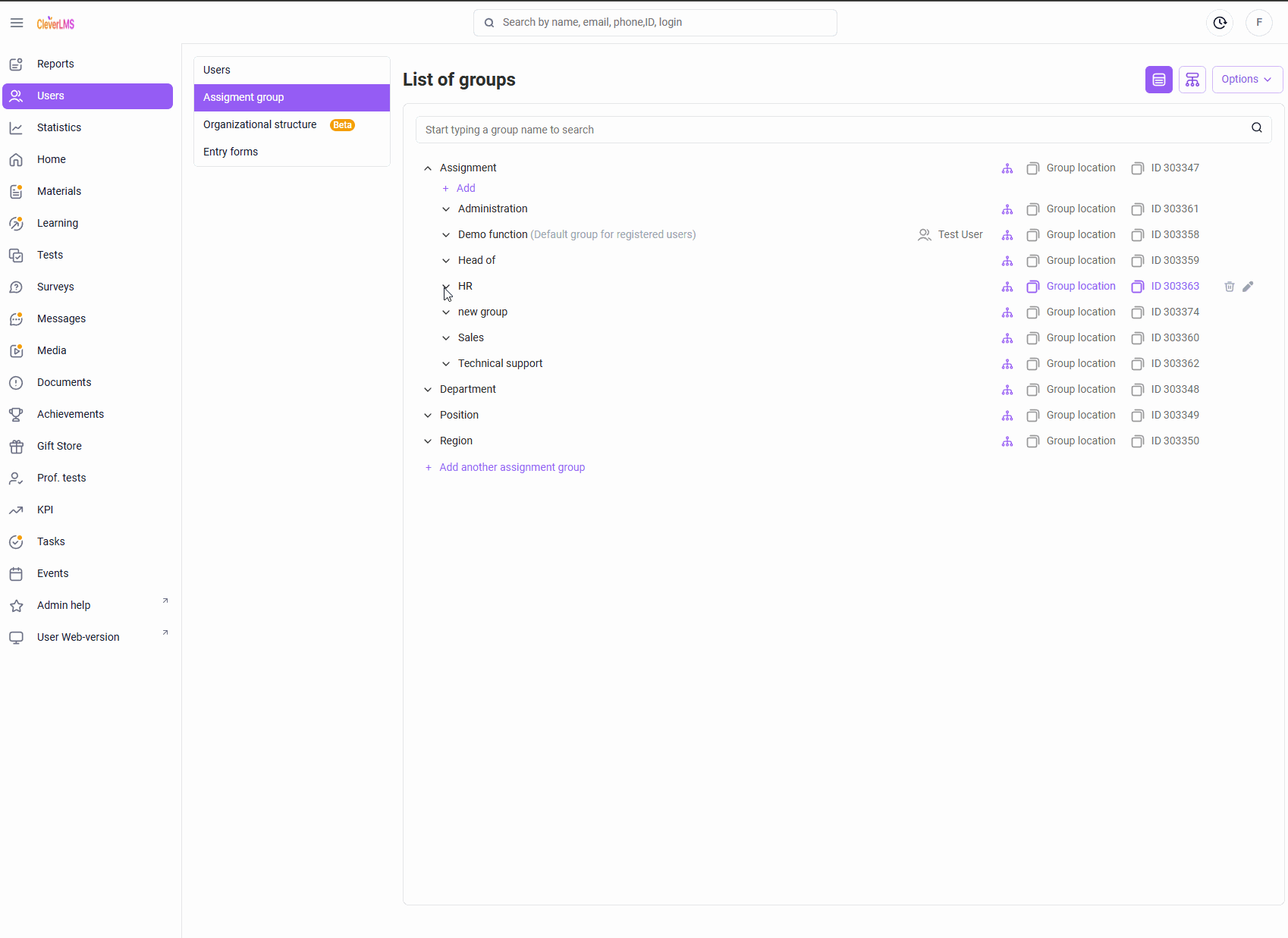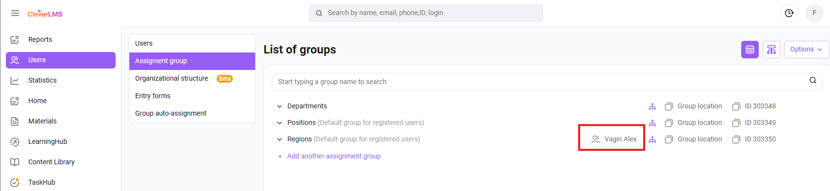 - Go to the Assignment Groups tab in the Users section ;