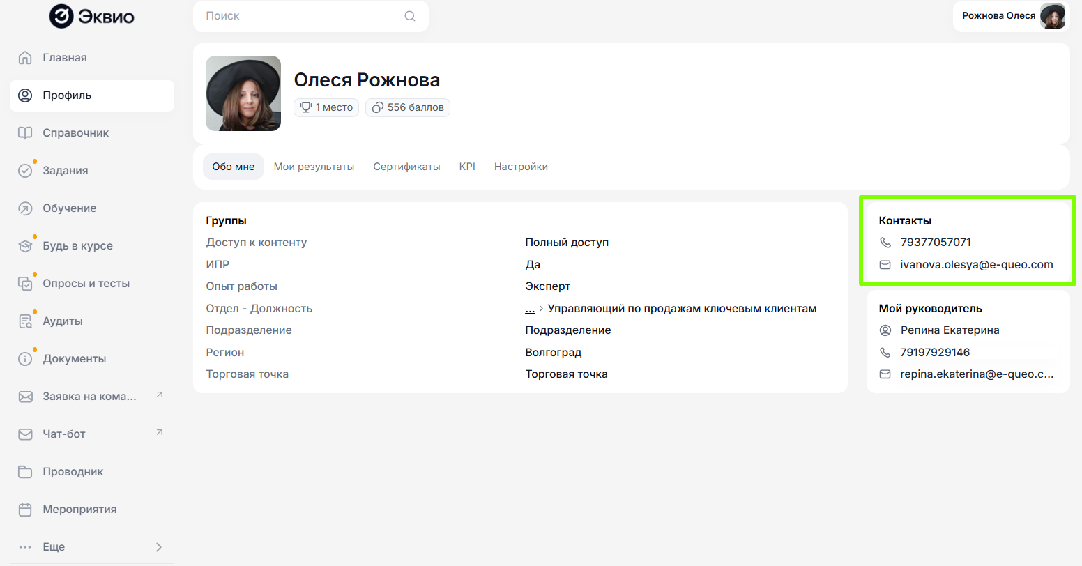 - Проверить корректность электронной почты, привязанной к вашей учетной записи, в виджете Контакты раздела Профиль;