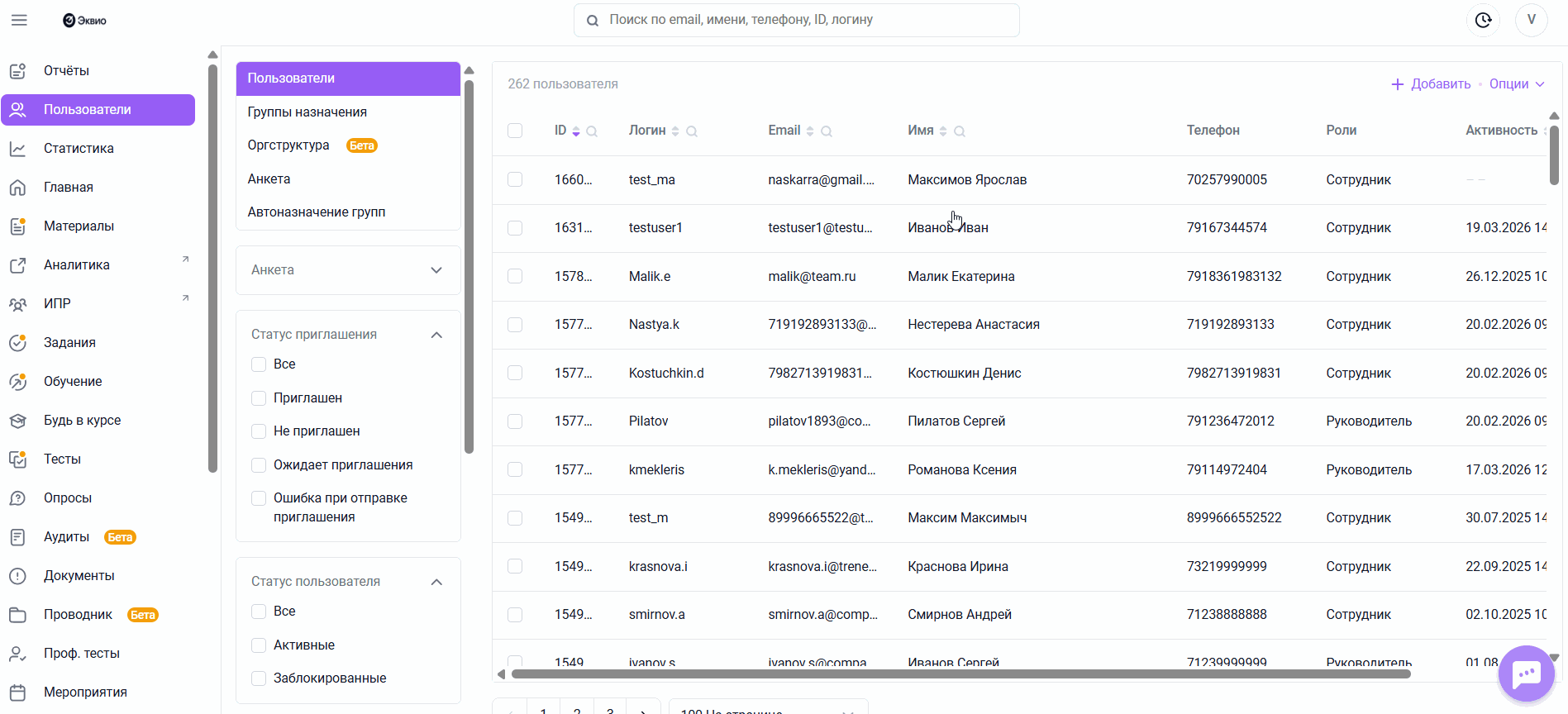 - Перейти на вкладку Пользователи раздела Пользователи;