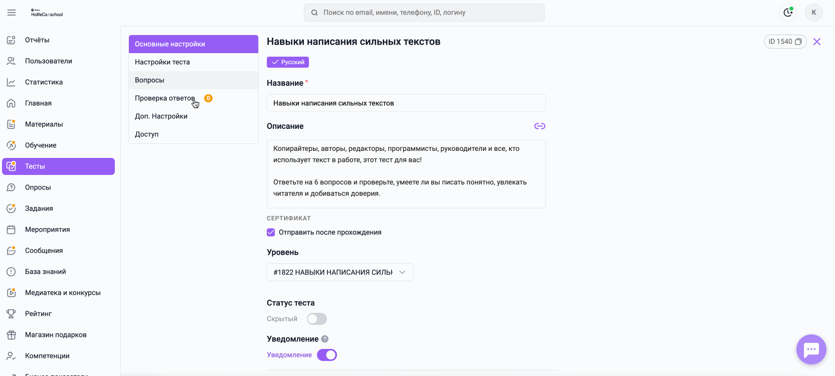 1. Перейдите в нужный тест и откройте вкладку Проверка ответов;