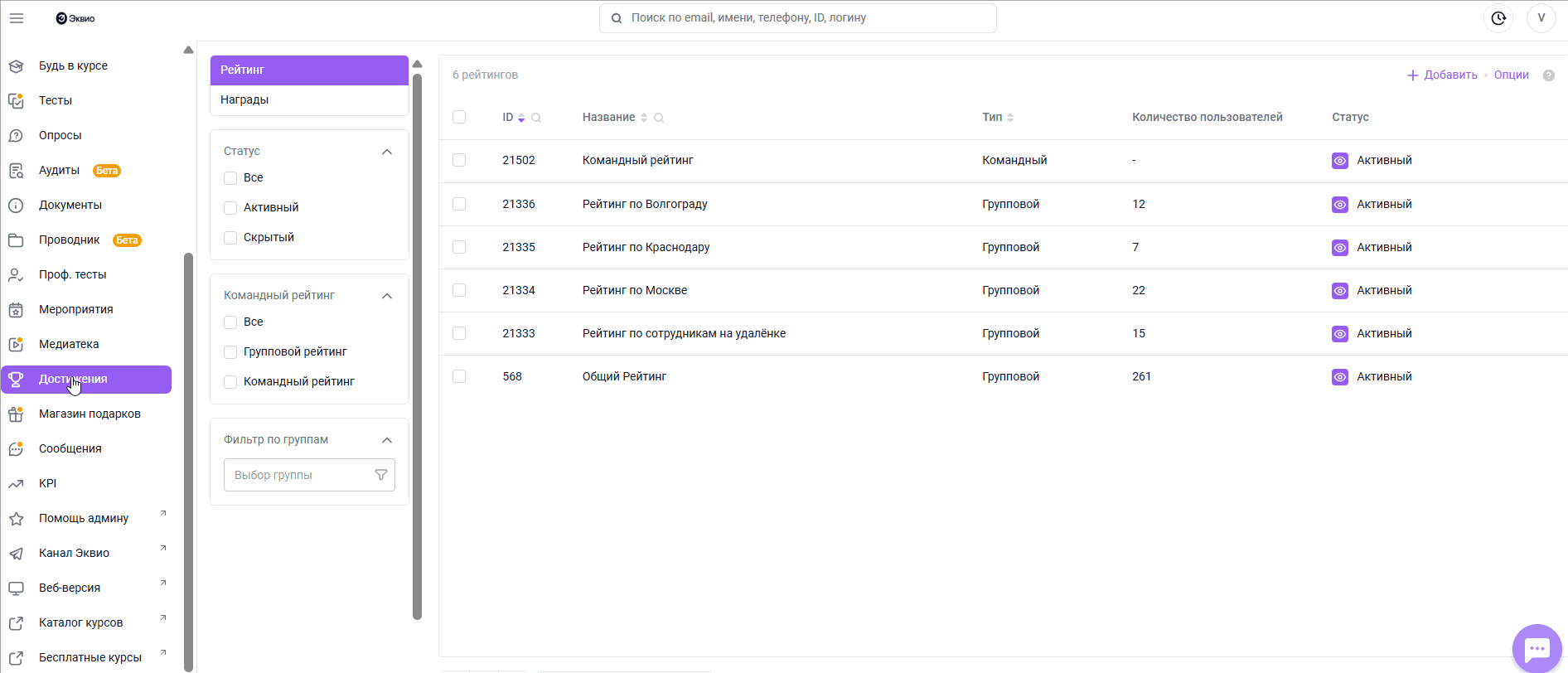 При необходимости список награжденных можно отсортировать по дате награждения, логину или имени пользователя.