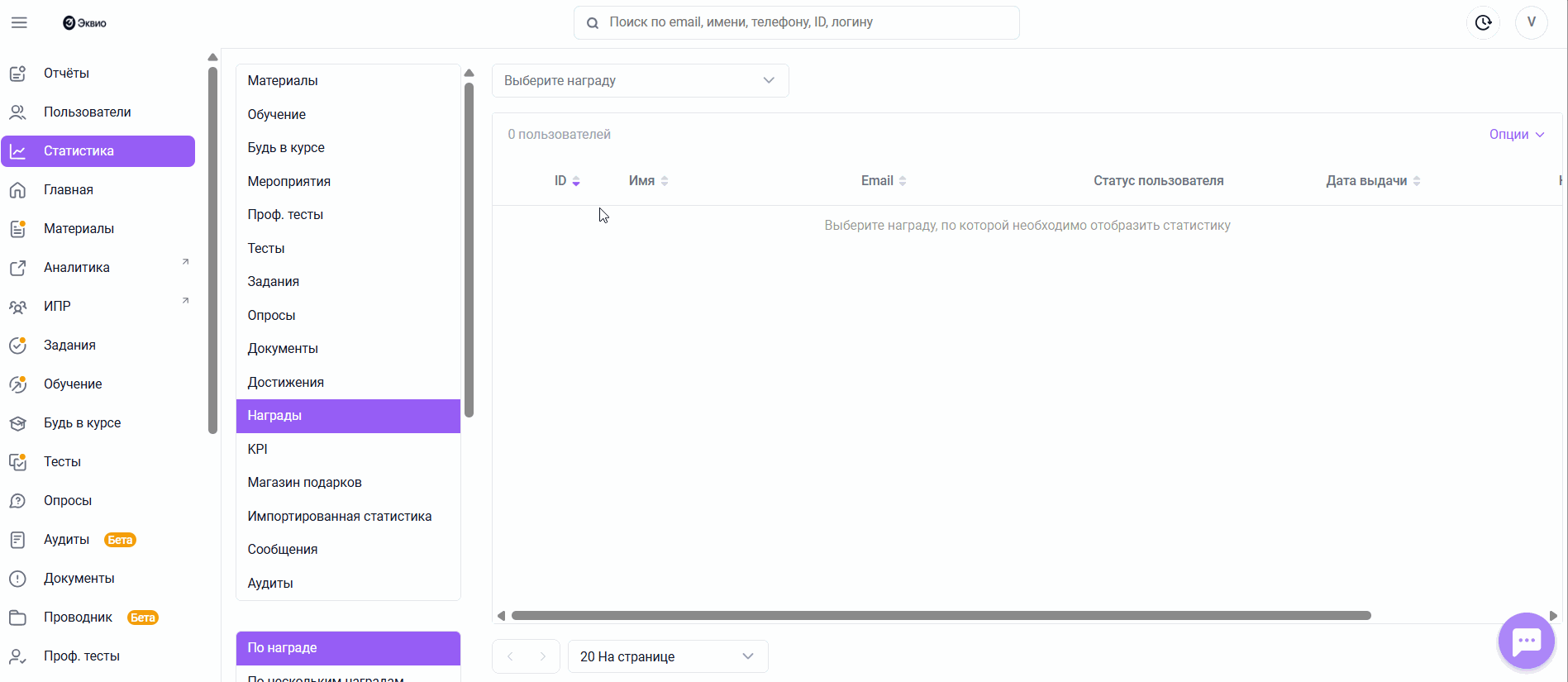 Работа со статистикой по наградам осуществляется в разделе Статистика.
