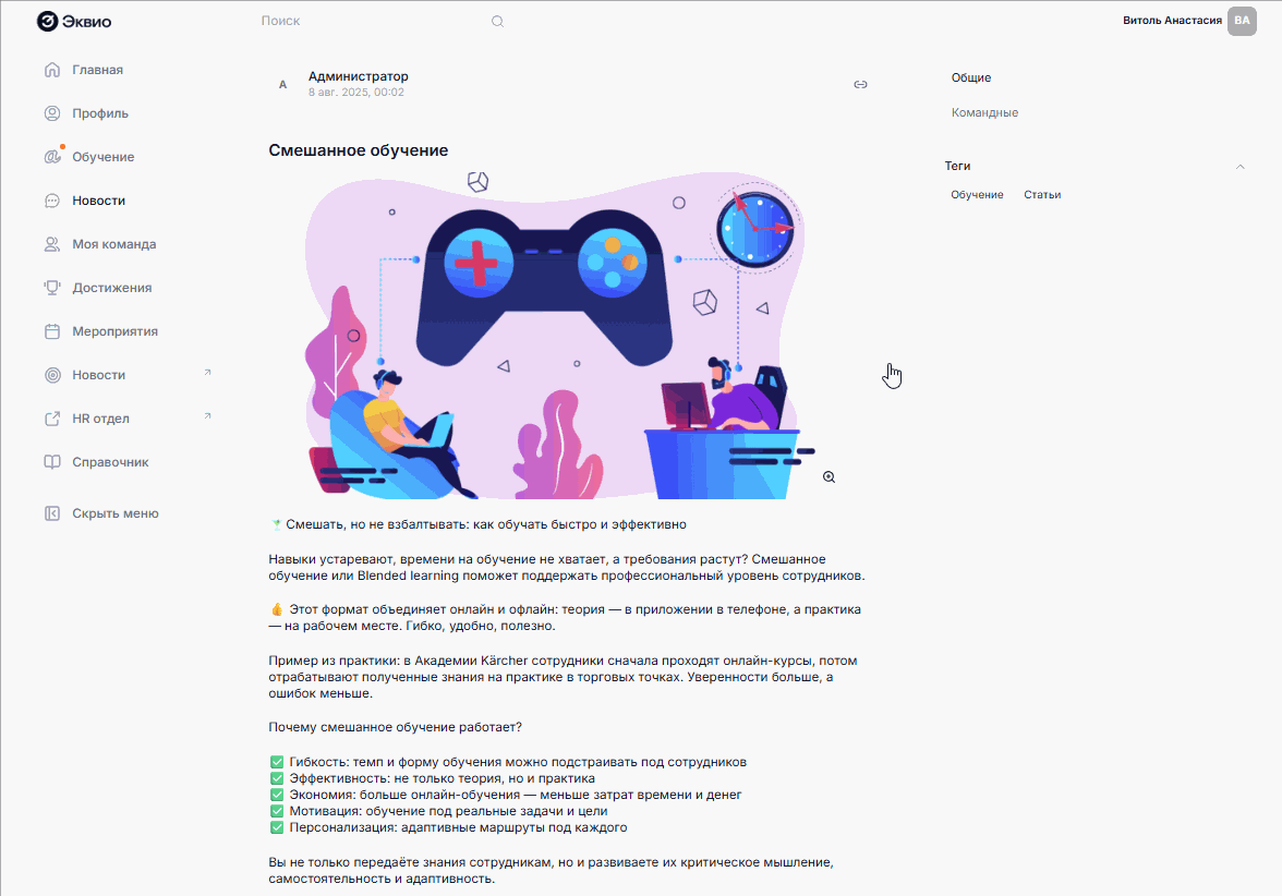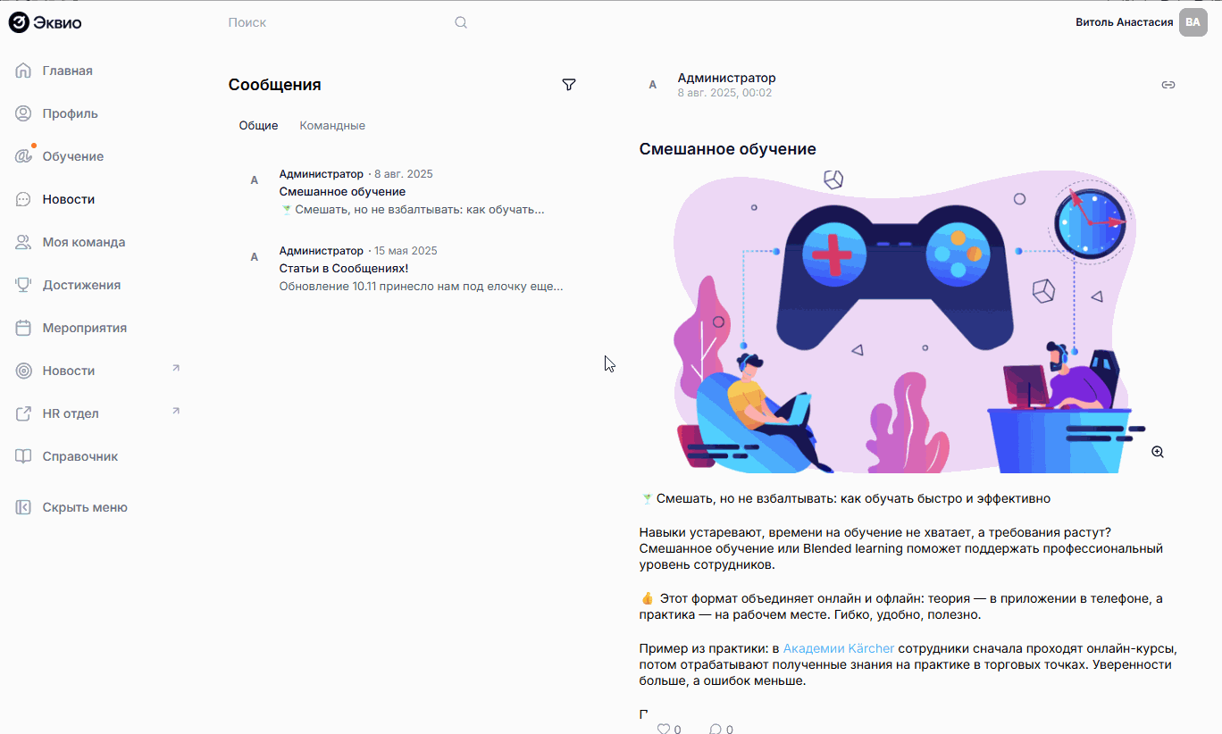Версия 14.0.0: теперь тема сообщения видна пользователю — она отображается в веб-версии в общем списке, внутри самого сообщения и на блокирующем экране, в виджете "Сообщения", что помогает быстрее ориентироваться в контенте. На вкладке «Командные» и при просмотре статьи, открытой из сообщения, тема по-прежнему отображаться не будет.