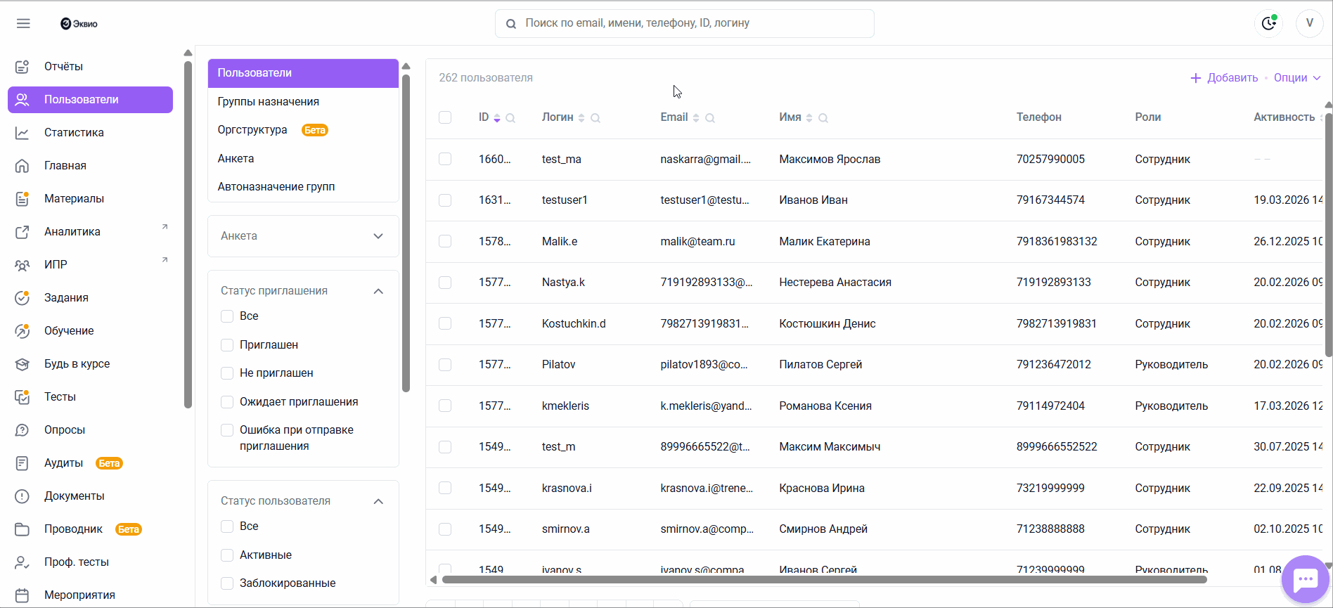 - Перейти в разделе Пользователи на вкладку Пользователи;