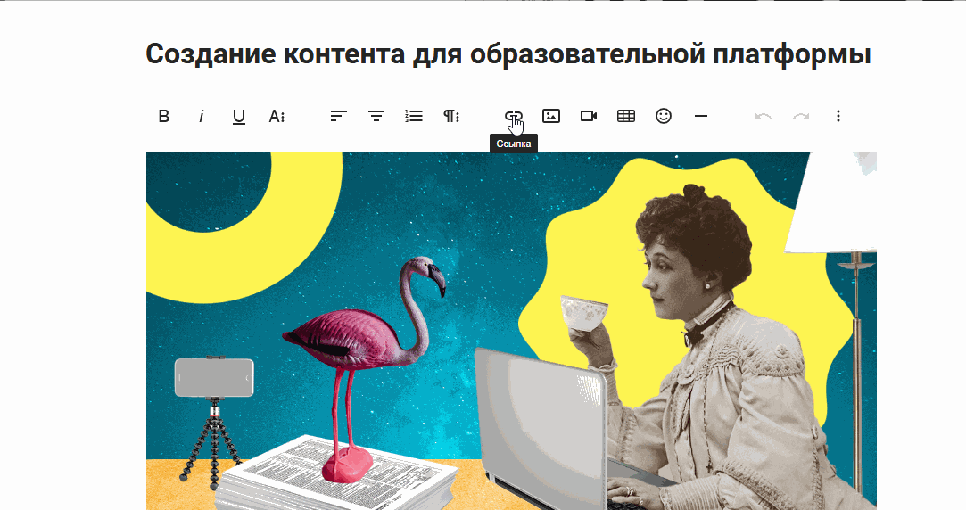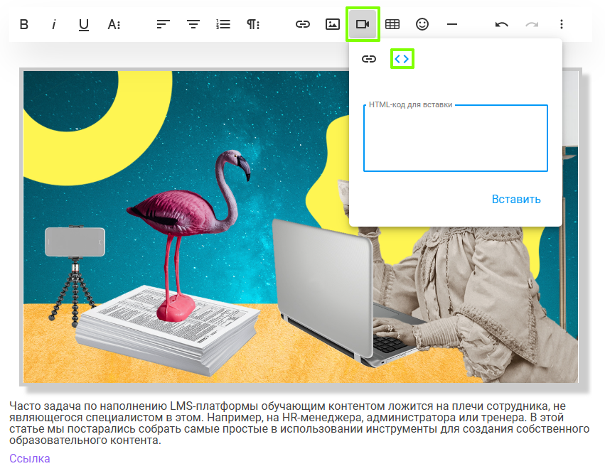 Добавление и редактирование элементов в статье материала Медиатеки