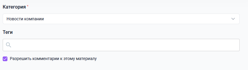 Чек бокс Разрешить комментарии к этому материалу (установлен по умолчанию) позволяет пользователям и администраторам оставлять комментарии к материалу Медиатеки.