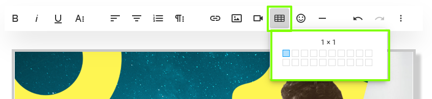 Указываем кол-во столбцов и строчек двигая курсор мышки вправо, влево и вниз, вверх.