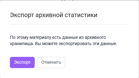 Через 24 часа после внесения изменений, описанных выше, статистика охлаждается. При формировании выгрузки по таким траекториям у главного администратора появляется "Экспорт архивной статистики".