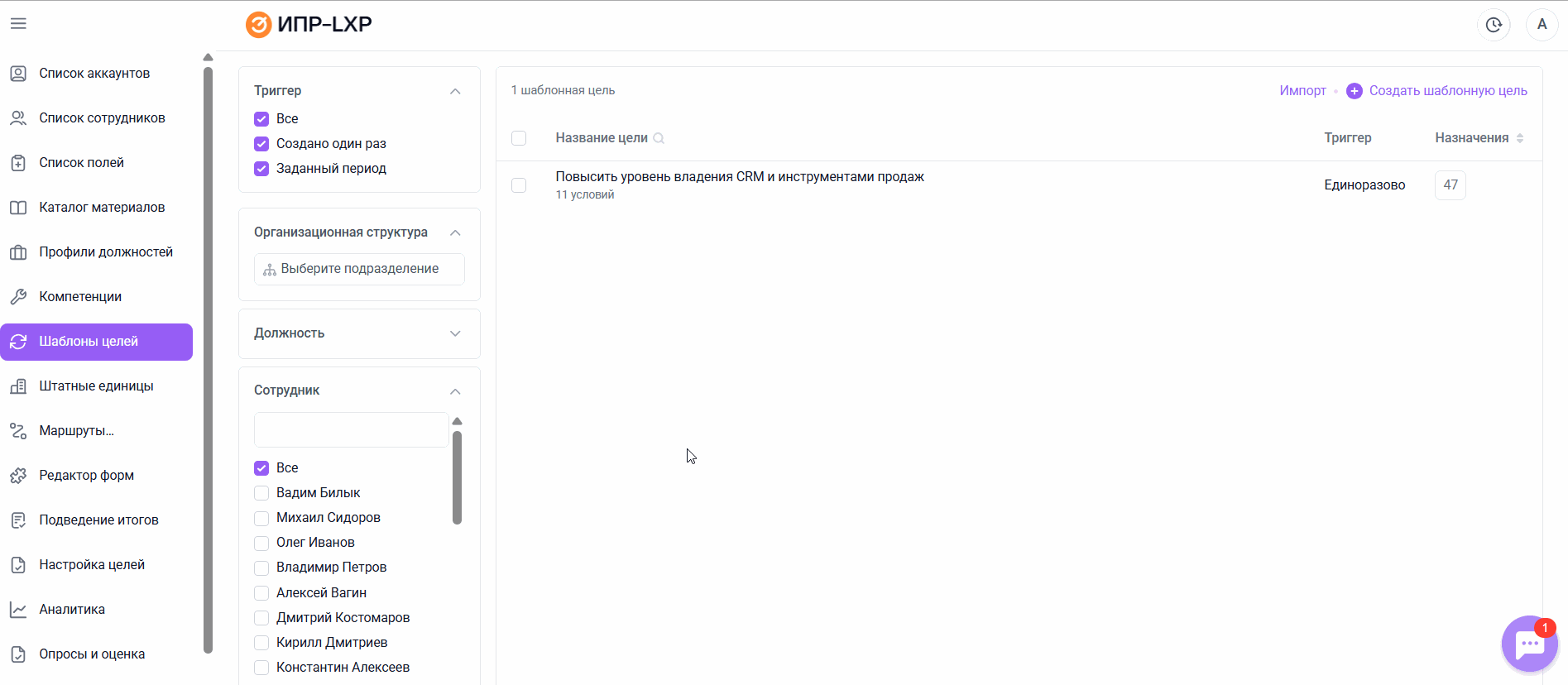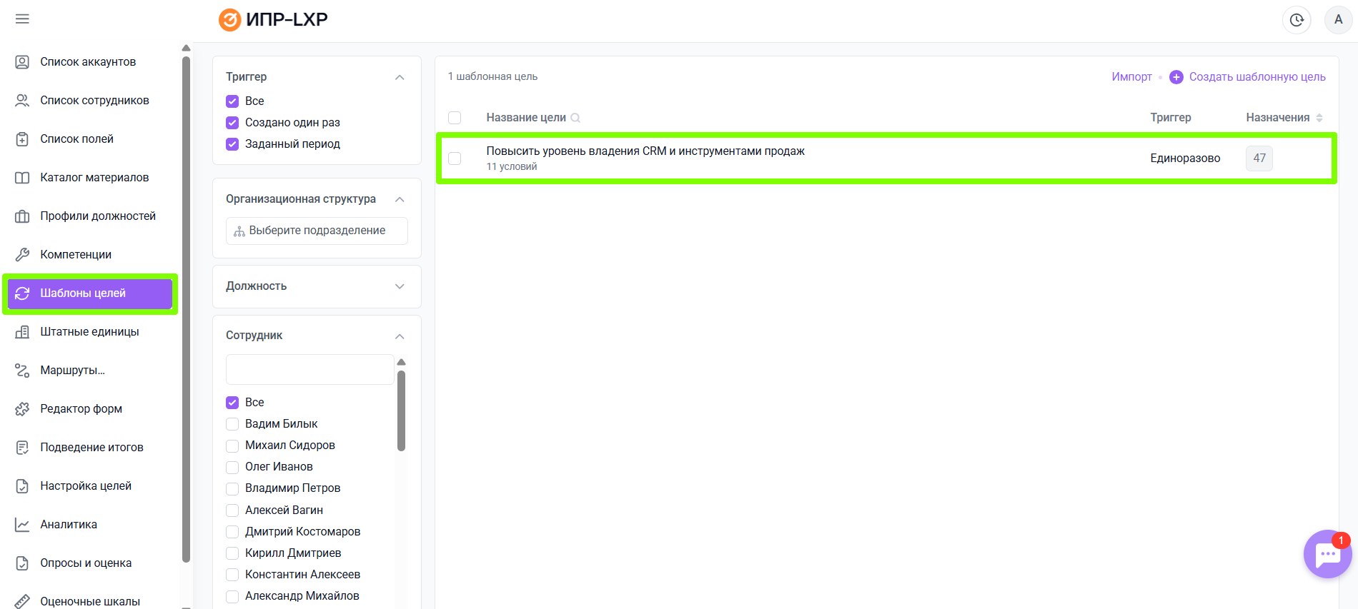 Шаблоны целей: автоматизация назначения целей в ИПР