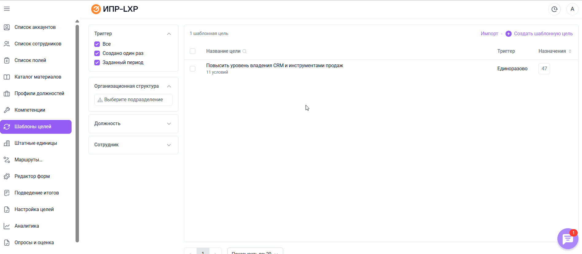- Шаблоны целей: автоматизация назначения целей в ИПР