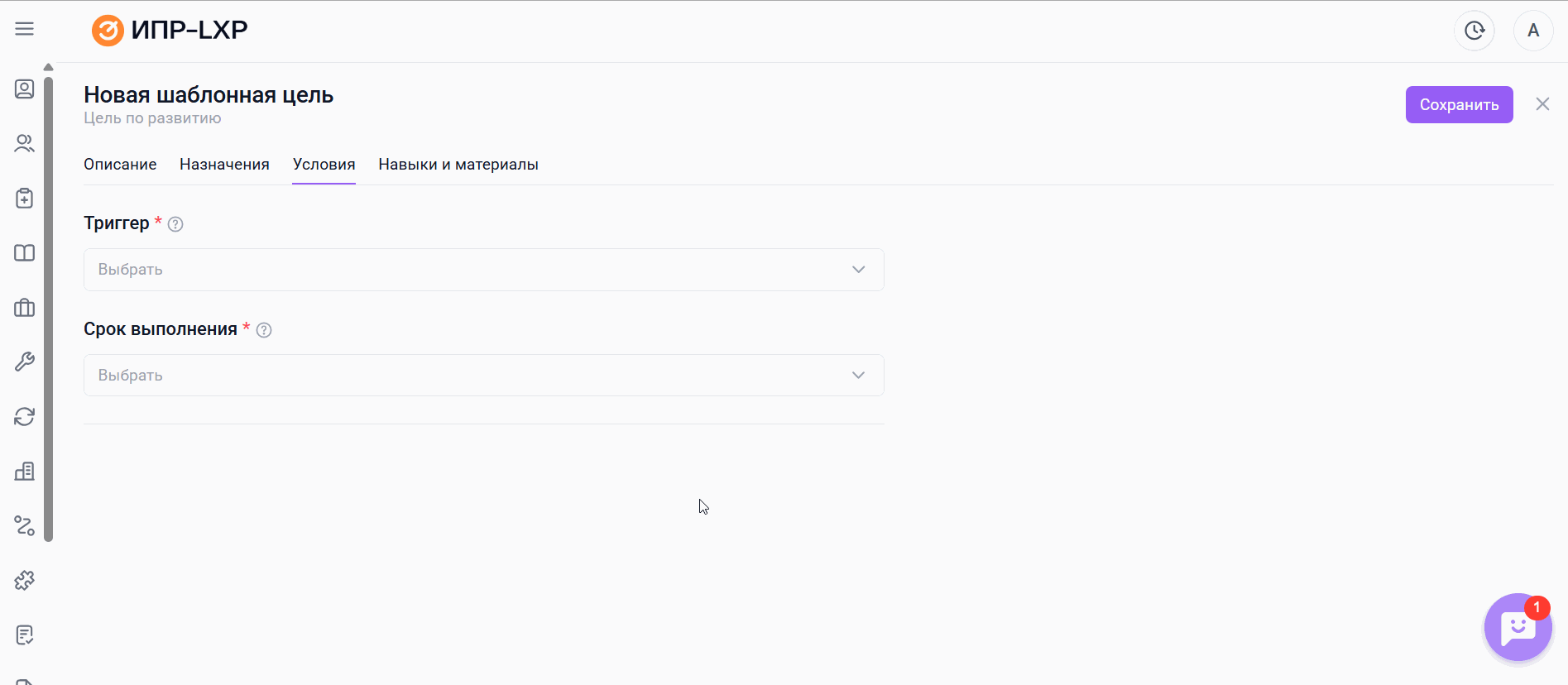С его помощью администратор может заранее задать типовые цели и условия их назначения, чтобы они автоматически появлялись в ИПР нужных сотрудников при открытии ИПР.