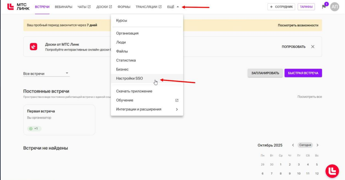 2. Запустить мероприятие непосредственно в МТС линк в качестве организатора без регистрации через Эквио.