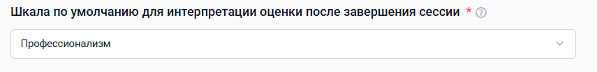 Блок Шкала по умолчанию для интерпретации оценки после завершения сессии позволяет выбрать, какая шкала будет использоваться в приоритетном порядке при подведении итогов оценки. Это нужно, когда в сессии разные навыки оцениваются по разным шкалам.