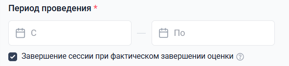 Если выбрать чек-боксом Завершение сессии при фактическом завершении оценки, то сессия будет считаться завершенной после того, как все опросы будут пройдены, даже если указанный срок завершения оценки еще не наступил.