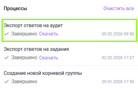 После того, как выгрузка была сформирована, ее можно скачать в окне процессов и использовать для дальнейшей аналитики.
