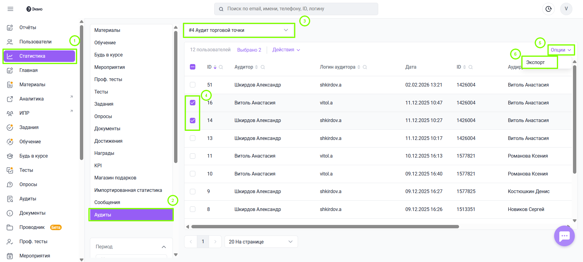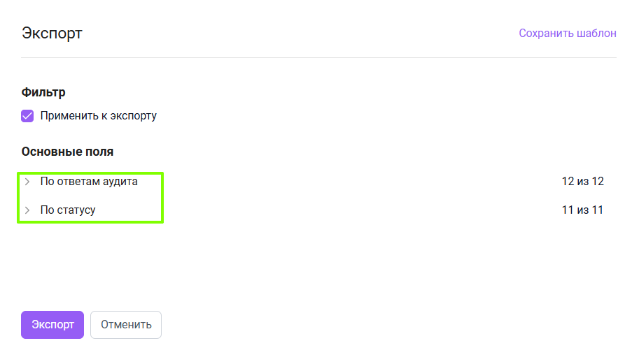 Экспорт статистики по аудитам
