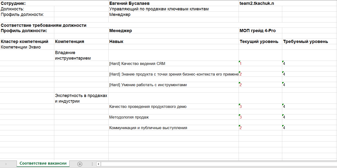 Как выглядит отчет о соответствии сотрудника вакансии: