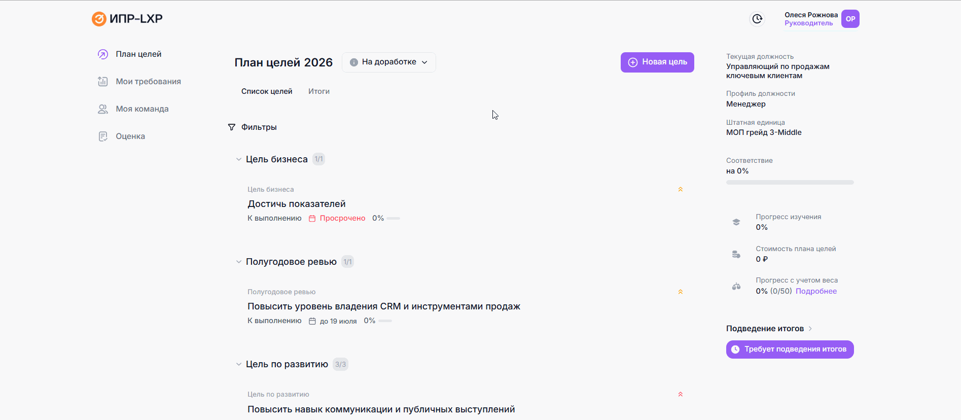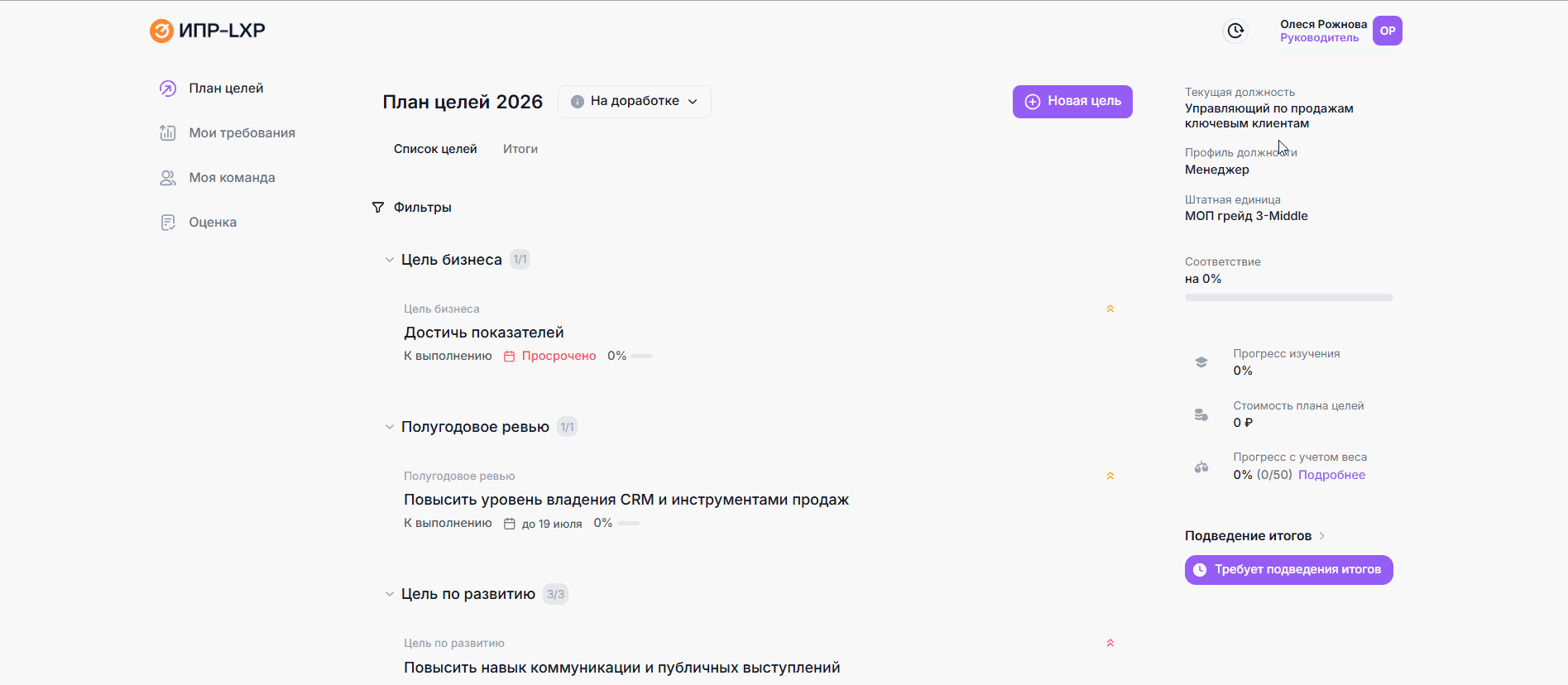 После этого сотрудник сможет приступить к выполнению целей в рамках своего ИПР.